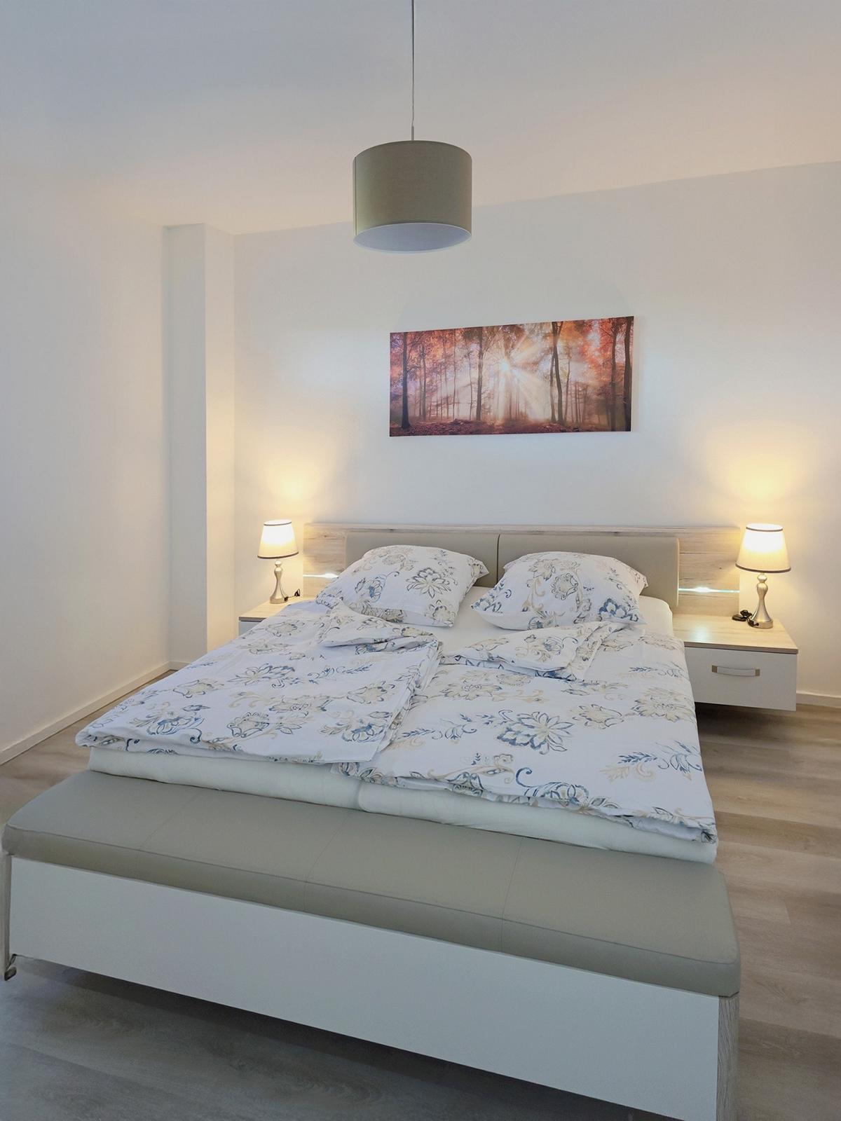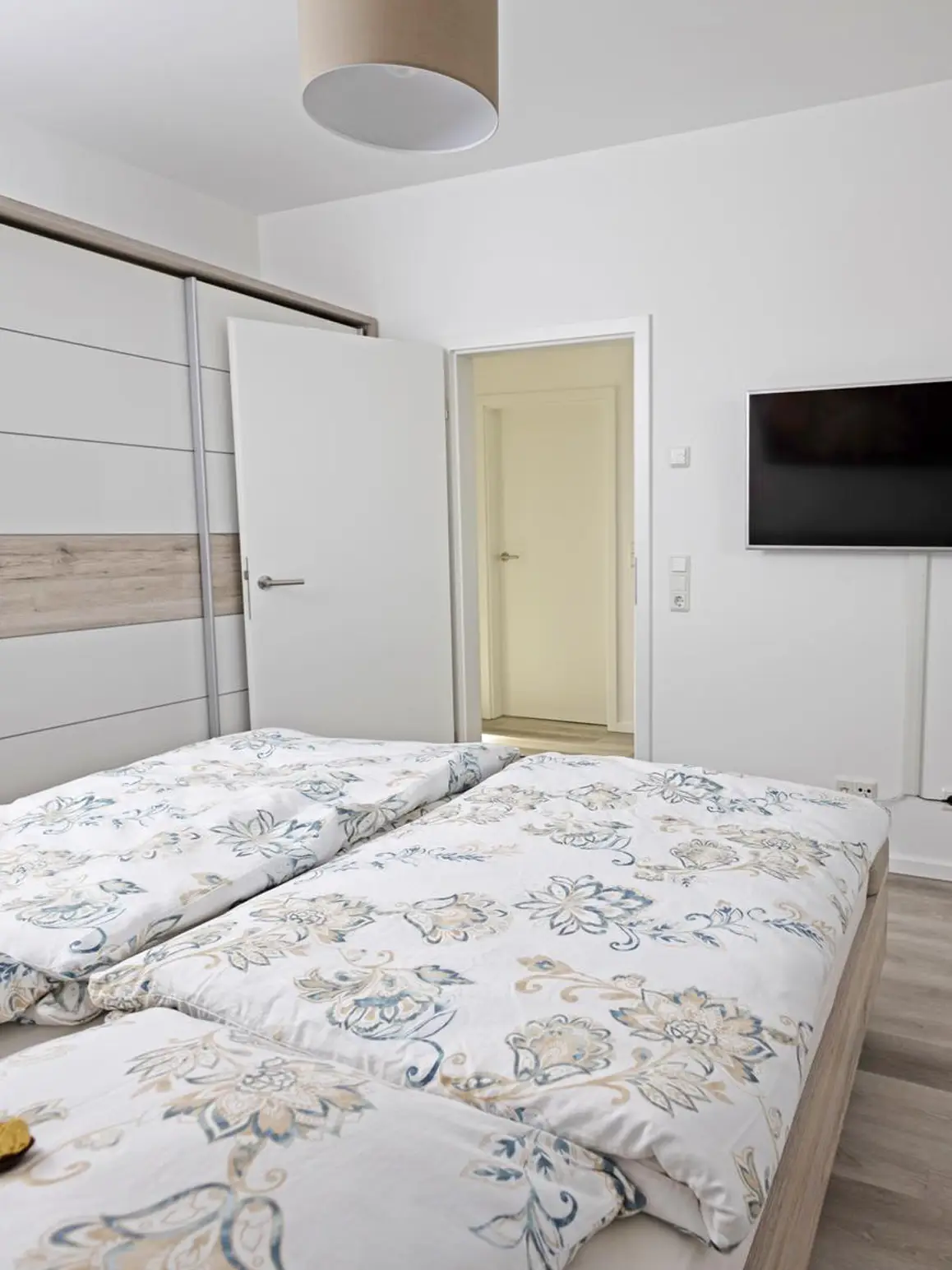 - 1 Schlafzimmer mit Doppelbett, Smart-TV, optionales Kinder-Beistellbett