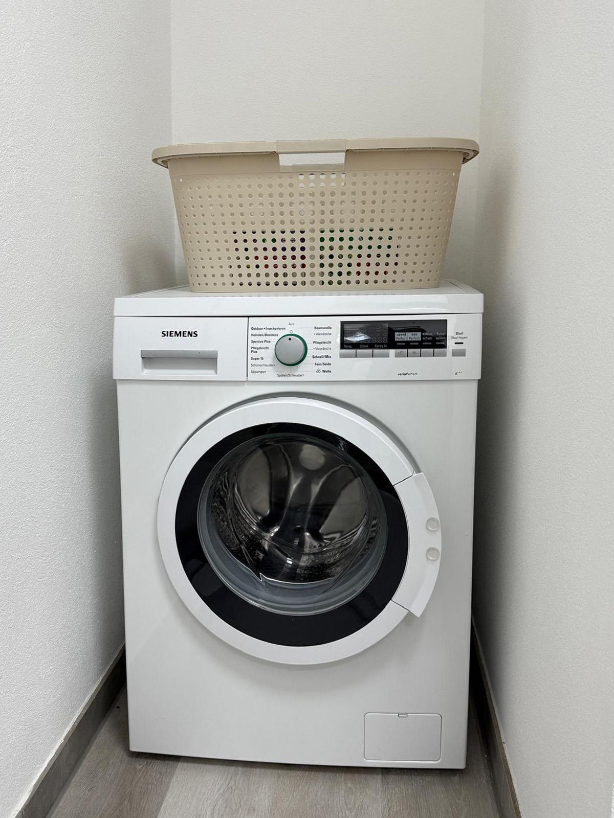 Waschmaschine, Wäschespinne und Wäscheklammern